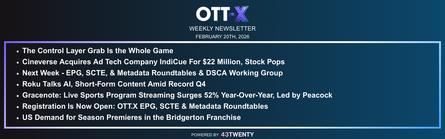 OTT.X, in collaboration with the DSCA, will convene a focused working group and roundtable discussion on February 23 centered on an industry EPG standard for live, FAST, and CTV environments. Participation is open to all OTT.X and DSCA members, as well as other relevant stakeholders who are directly involved in this area of the industry.